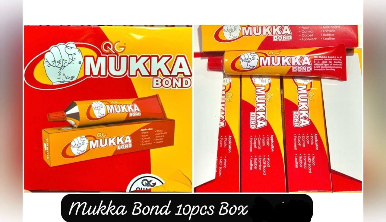 The Mukka Bond 10-piece box contains a multipurpose adhesive from the manufacturer Quadri Group. Mukka Bond is known for its high-strength and versatile adhesion across a wide range of materials, including leather, rubber, and various plastics.